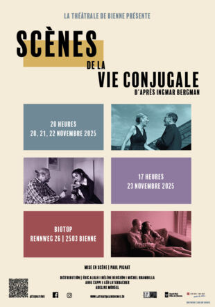 La Théâtrale de Bienne présente Scènes de la vie conjugale d’Ingmar Bergman au Théâtre Biotop, une plongée sensible dans les méandres de l’amour et de...